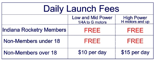 In addition to annual club memberships, Indiana Rocketry, Inc. offers non-members the option to pay daily flight fees, allowing visitors to launch rockets with us.